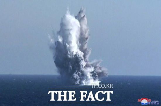 북한이 지난 21일부터 23일까지 핵무인수중공격정 '해일'의 수중 폭발시험을 했다며 24일 사진을 공개했다./조선중앙통신 노동신문