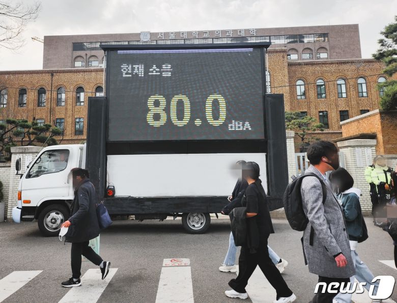 25일 뉴스1 취재에 따르면 경찰은 이날 오후 대학로 일대에서 열린 민주노총 '노동자 대투쟁 선포 전국노동자대회'와 산별노조의 결의대회에 처음으로 소음 측정 전광판 차량을 배치했다.