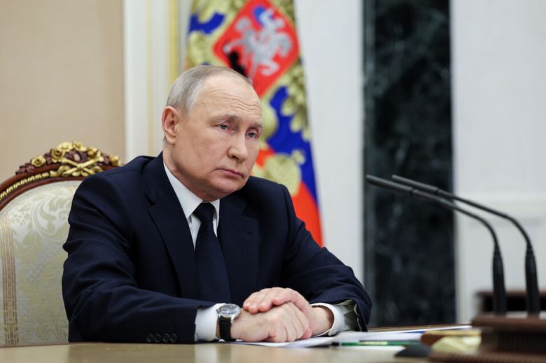 블라디미르 푸틴 러시아 대통령이 25일(현지시각) 러시아 대통령궁에서 교통부 장관과 회의하고 있다. 모스크바/TASS 연합뉴스