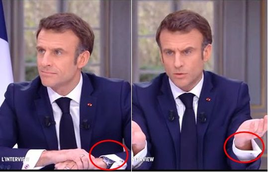 에마뉘엘 마크롱(45) 프랑스 대통령이 생방송 인터뷰 도중 고가의 손목시계를 슬쩍 푸는 장면이 포착돼 ‘명품을 쓰는 부자 대통령’이라는 비판을 받고 있다.