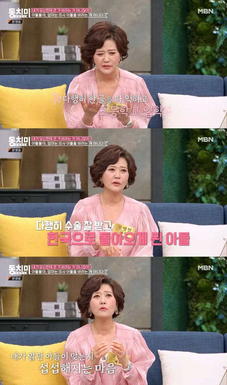 지난 25일 방송된 MBN '속풀이쇼 동치미'에서 오영실은 미국으로 유학을 갔던 두 아들에 대한 이야기를 털어놓았다.