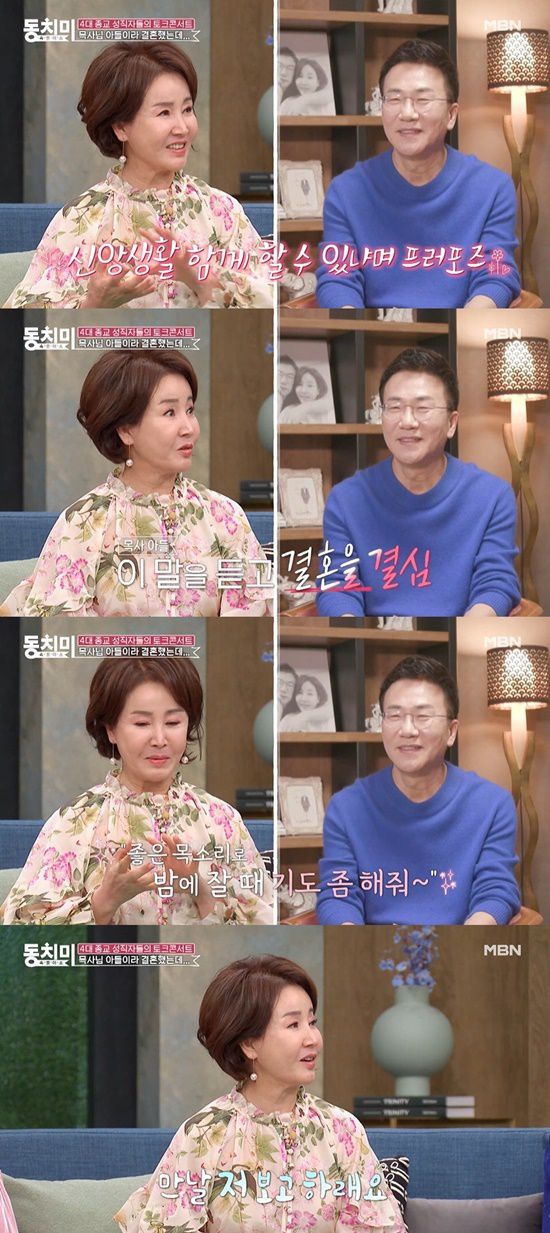 선우은숙은 "지금 남편하고 결혼하면서 프러포즈 단계에서 '나와 신앙생활 같이 할 수 있나요'라고 물어봤더니 '나 목사님 아들이에요'라고 하더라, 그래서 결혼했다"라고 말했다.