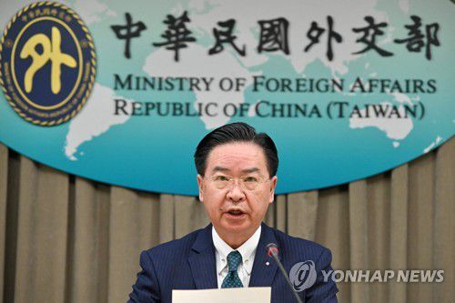 (AFP=연합뉴스) 우자오셰 대만 외교부장이 26일 타이베이에서 온두라스와의 단교를 발표하는 모습. 2023.3.26.