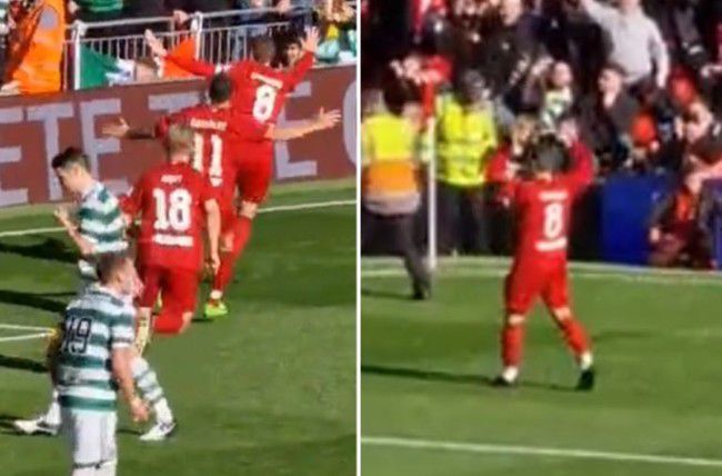 이때 불미스러운 일이 발생했다. 코너 플래그 쪽에서 세리머니를 펼치던 제라드 감독을 향해 셀틱 관중들로부터 물병이 날라든 것. 제라드 감독과 리버풀 레전드 동료들이 맞진 않았지만 셀틱 팬들의 증오심이 고스란히 느껴졌다.