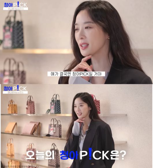 그러면서 “다리를 좀 더 길어보이게 만들기 위해 이렇게 짧게 든다”라며 포즈를 잡아 눈길을 끌었다. 이후 이청아는 "만약에 가진 백이 많지 않다면 컬러는 B라고 말을 해주고 싶다"라 조언했다.