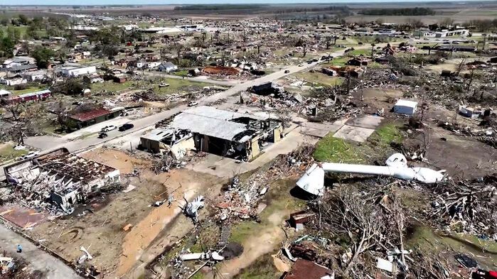 현지시간 지난 24일 밤, 최대 시속 128km에 이르는 초강력 토네이도가 미국 미시시피주를 강타해 한 시간가량 274km 구간을 휩쓸었습니다.
