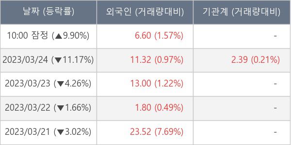 [표] 외국인ㆍ기관 순매매량 (단위 만주)