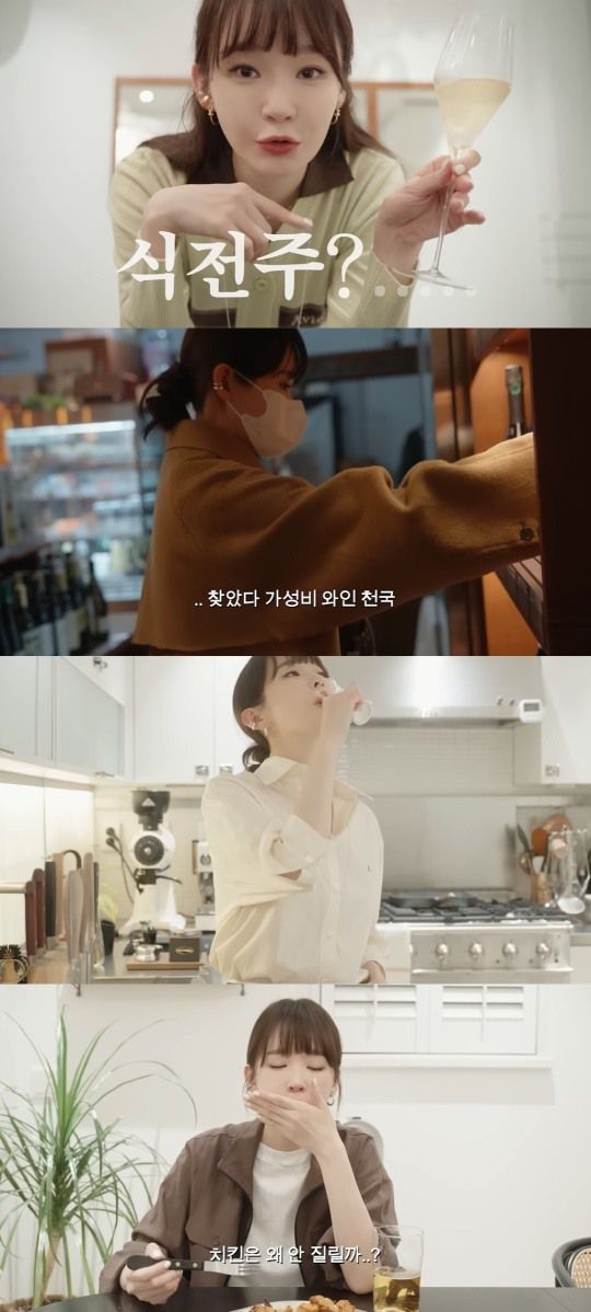 집으로 돌아온 강민경은 와인을 꺼내며 "완전히 가성비라고 할 순 없지만, 합리적인 금액대의 샴페인을 사왔다. 날씨가 엄청 따뜻해졌다. 시원하게 샴페인 한 잔을 마시며 바질페스토 파스타를 해먹으려고 한다"라고 말했다.