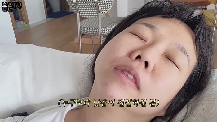 배 위에 아들을 올려놓은 홍현희는 “잠 투정이 올 때쯤 눕혀서 재워도 되는데 바빠서 많이 못 안아주니까 교감하려고”라고 말하다 “거짓말이고 내려놓으면 금방 깨요”라고 지친 표정을 지었다.