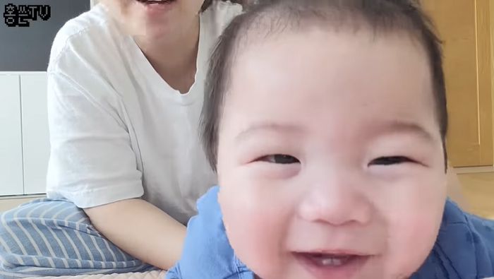 제이쓴이 잠에서 깨기 전 아들을 보는 홍현희. 아들 준범은 능숙한 뒤집기 후 카메라를 향해 살인 미소도 날렸다. 입속 작은 아랫니 두 개도 눈길을 끌었다. 홍현희는 “준범 씨는 카메라를 너무 좋아하세요”라며 웃었다.