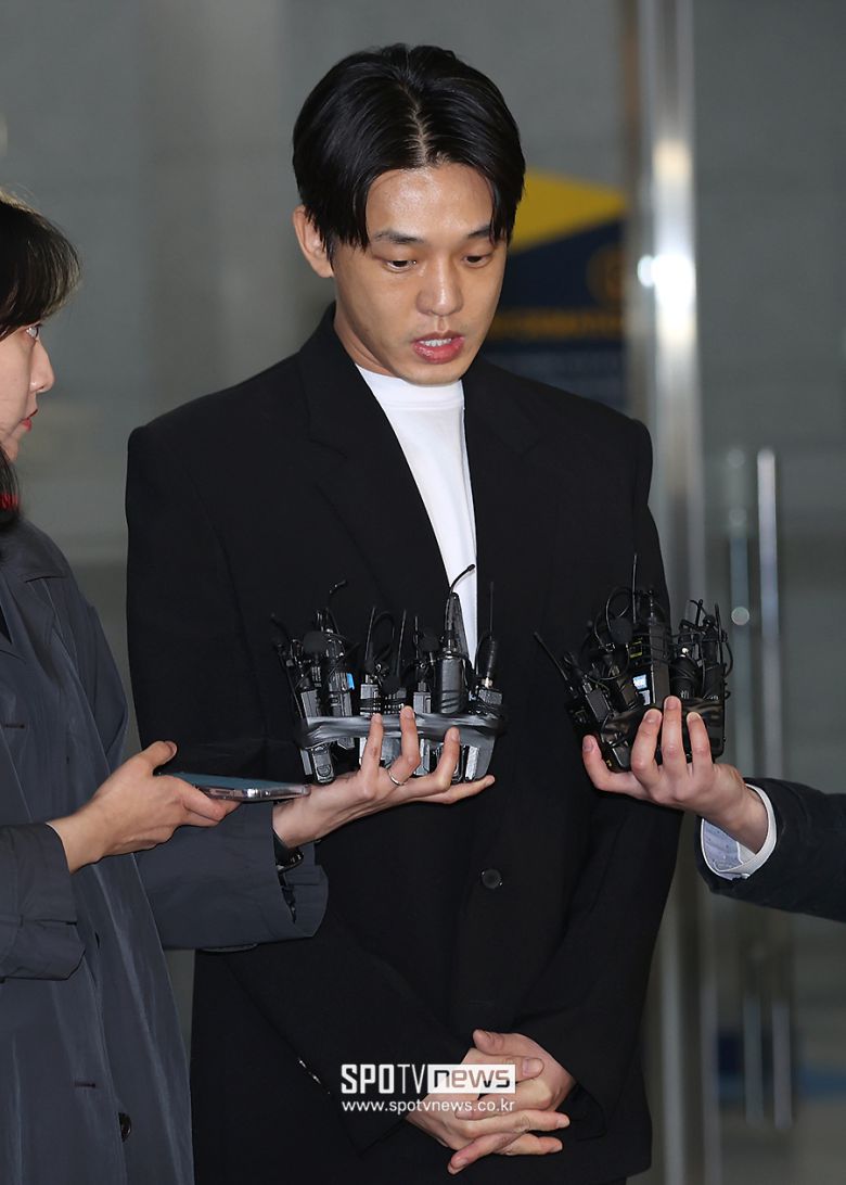 초췌해진 얼굴의 유아인은 이 자리에서 마약 4종 투약 혐의를 인정하느냐는 질문에 "제가 밝힐 수 있는 사실들 그대로 말씀드렸다"라고 답했다. 이어 "불미스러운 일로 이런 자리에 서서 그동안 저를 사랑해주셨던 많은 분들께 큰 실망을 드리게 된 점 깊이 반성한다. 죄송합니다"라고 말했다.
