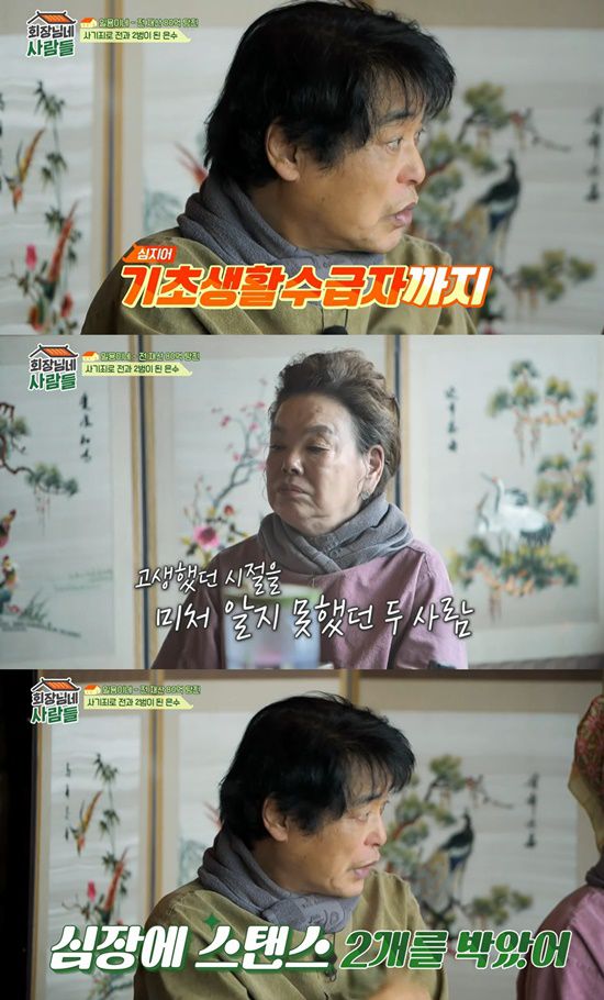 또 "그래서 많이 베풀어야겠다는 생각을 한다. 기초생활수급자 생활까지 했다. 하다못해 계속 신경쓰다 보니 건강도 나빠져서 당뇨도 걸리고, 심장에 스탠스 2개를 박았다. 입원해있는데 갑자기 나를 수술실로 끌고 가더니 심장에 스탠스를 박아야 한다더라. 지금도 박혀 있다. 건강한 줄 알았다"고 전했다.