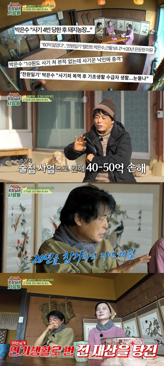 (엑스포츠뉴스 김유진 기자) '회장님네 사람들'에 출연한 배우 박은수가 과거 사업으로 인해 사기를 당하고 재산을 잃은 사연을 전했다.