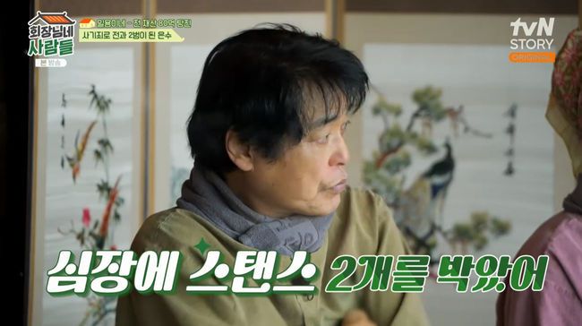 박은수는 "집사람과 딸에게 너무 미안하다. 기초생활수급자 생활도 했다. 당뇨도 걸리고 심장에 스탠스를 두 개나 박았다"라고 말했다. 김수미는 "왜 돼지농장에 가서 일했나"라고 물었다. 박은수는 "자존심이 세서 누구에게 돈 얘기를 하고 싶지 않았다. 그래서 혼자 해결하고 싶었다"라며 돼지농장에 가서 일을 했던 사연을 이야기했다.