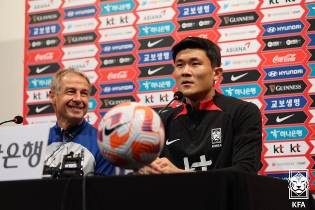 경기를 하루 앞두고 열린 사전 기자 회견장에는 클린스만 감독과 김민재가 함께 모습을 드러냈다. 그중 김민재에게 '우루과이전 각오', '페데리코 발베르데에 대한 평가', '팀 동료 마티아스 올리베라와의 맞대결' 그리고 '닮고 싶은 선수' 등에 대한 질문이 이어졌다.