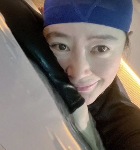 공개된 사진에는 수영 수트를 입고 수영 모자를 쓴 김혜수의 모습이 담겼다. 초근접 셀카에도 굴욕없는 미모를 자랑하고 있다.