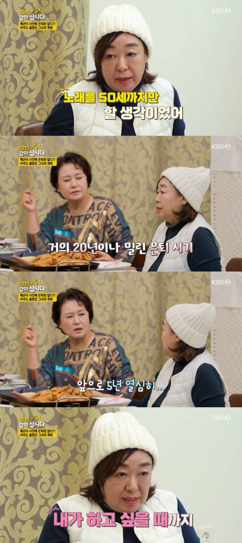 28일 방송된 KBS 2TV '박원숙의 같이 삽시다'(이하 '같이삽시다')에서는 은퇴에 대해 언급하는 혜은이의 모습이 전파를 탔다.