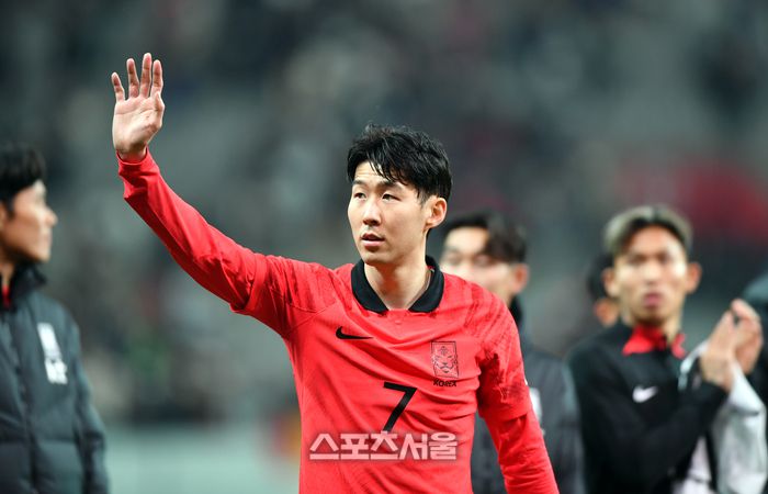 대한민국 축구대표팀 손흥민이 28일 서울월드컵경기장에서 열린 대한민국과 우루과이대표팀과의 평가전을 1-2로 패한 후 아쉬운 표정으로 그라운드를 돌며 팬들에 인사하고 있다.2023.03.28.상암 | 강영조기자 kanjo@sportsseoul.com