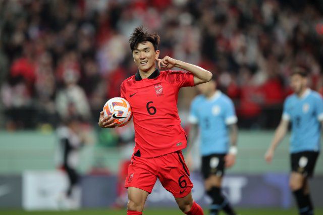 위르겐 클린스만 감독이 이끄는 한국 축구대표팀은 28일 서울월드컵경기장에서 열린 우루과이와 친선경기에서 1-2로 패했다. 황인범은 0-1로 뒤진 후반 6분 동점골을 넣었다. 파울루 벤투 전 감독의 신임을 받으며 한국의 허리를 책임졌던 황인범은 이날 득점과 활약으로 클린스만 감독의 눈도장을 제대로 찍었다.
