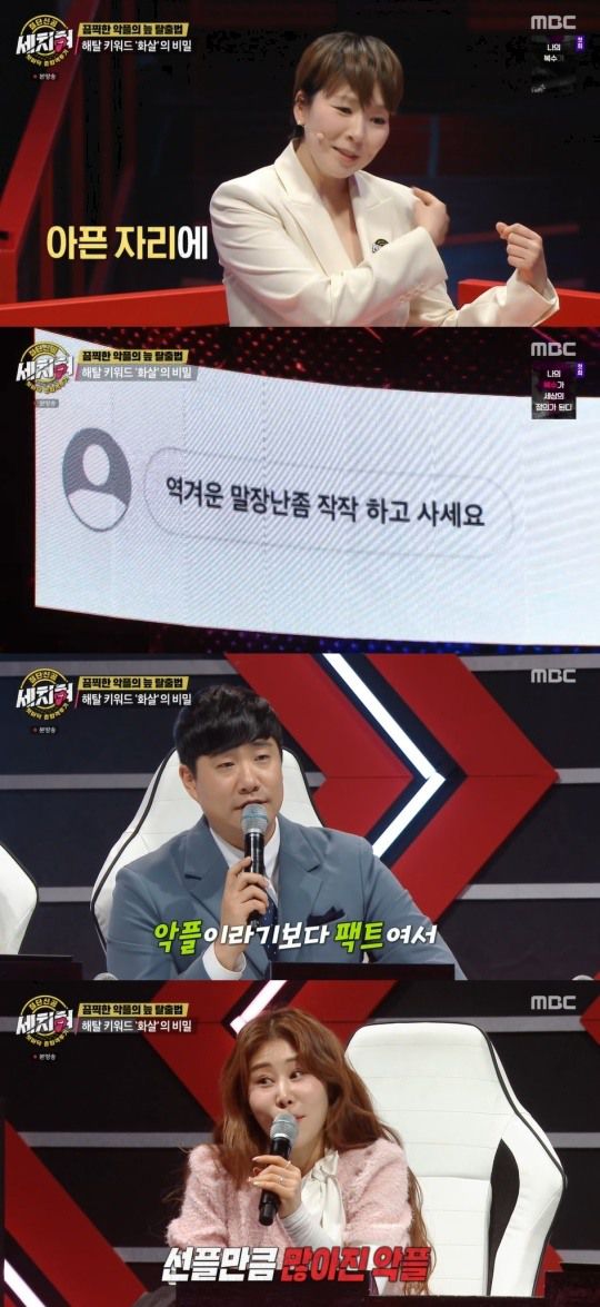 28일 밤 10시 방송된 MBC '혓바닥 종합격투기 세치혀'에서는 곽정은이 악플에 대해 말하는 모습이 그려졌다.