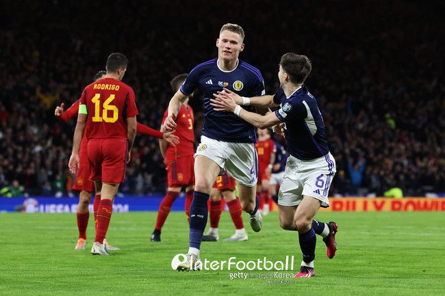 [A매치 리뷰] 맥토미니 '또 멀티골!'...스코틀랜드, 스페인에 2-0 깜짝승