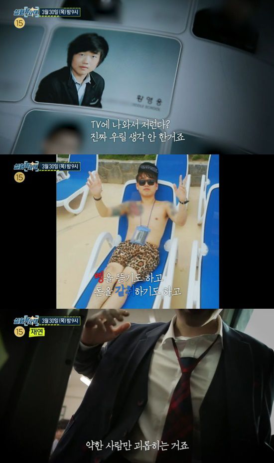 30일 방송되는 MBC '실화탐사대'는 황영웅의 학폭논란을 다룰 예정이다. 이 소식이 알려지자 황영웅의 팬덤은 '실화탐사대'의 게시판을 찾아 비난글을 도배했다. 일부에서는 황영웅과 관련 없는 '실화탐사대' MC 신동엽을 위협하며 눈살을 찌푸리게 만들었다.