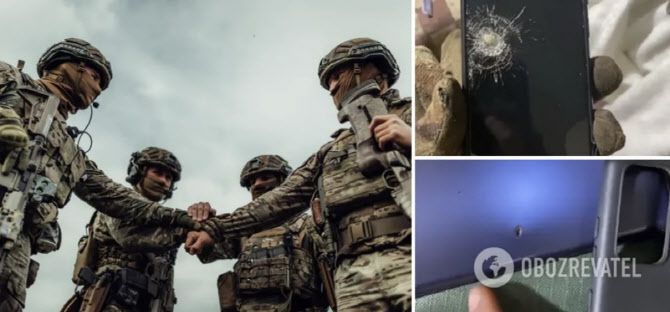 우크라이나 매체 Obozrevatel이 보도한 내용. 오른쪽 상단이 총알을 막아준 ‘갤럭시폰’. (사진=Obozrevatel)