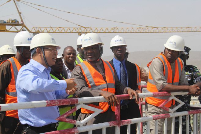 최근 아프리카 나이지리아의 한 수력 발전소 건설현장에서 중국측 감독관이 건축 프로젝트를 지휘·감독하는 장면. 차이나머니가 투입된 현장으로 알려지고 있다./제공=런민르바오(人民日報)