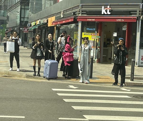 공개된 사진 속에는 개성 넘치는 분장을 한 멤버들의 모습이 담겼다. 검은색 옷을 입고 파란색 캐리어를 잡고 있는 이영지, 블랙 원피스 차림의 미미, 뿌까머리를 한 안유진이 시선을 끈다.