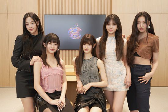 뉴진스(민지, 하니, 다니엘, 해린, 혜인)는 29일 오후 서울 강남 애플스토어에서 미디어 행사에 참석, 새로운 콜라보 프로젝트 소개 및 그간 활동 과정과 향후 활동 계획 등에 대한 이야기를 나눴다.
