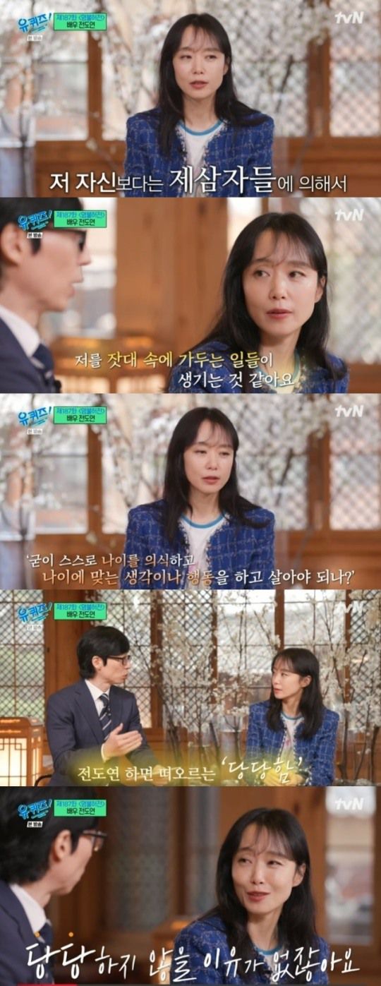 29일 밤 방송된 tvN 예능프로그램 ‘유 퀴즈 온 더 블럭’에서는 전도연이 당당한 마인드를 보여줬다.
