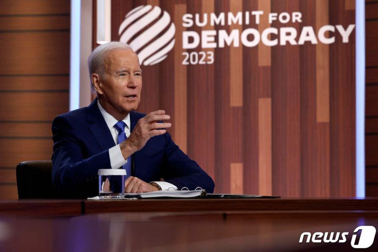 (워싱턴=뉴스1) 김현 특파원 = 조 바이든 미국 대통령은 29일(현지시간) 미국 주도로 열린 2차 민주주의 정상회의에서 6억9000만 달러(약 9000억원) 규모의 새로운 자금 지원 계획을 발표했다.