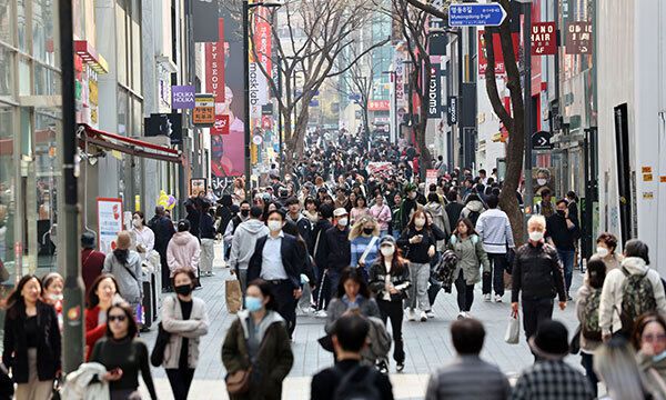 서울 중구 명동에서 외국인 관광객들이 거리를 걷고 있다. 연합뉴스