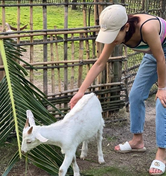공개된 사진 속 김지민은 해외의 한 농장을 방문해 인증샷을 찍고 있는 것으로 보인다. 그녀는 자연 그대로의 동물을 관찰하자며 동물원 가지 않기 운동을 펼쳐 눈길을 끌었다.