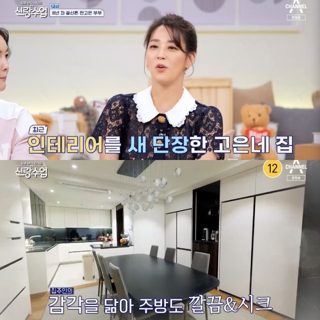 먼저 영상에서는 화이트 톤 거실과 감각이 돋보이는 조명까지 깔끔한 분위기를 안기는 집안이 공개돼 눈길을 끌었다. 이때 세련된 주방에서 요리를 하고 있는 한고은의 모습이 포착됐고, 패널들은 놀라움을 감추지 못했다. 이에 이승철은 “‘신랑수업’에서 교감 선생님 집은 최초 공개 아니냐”라고 물었고, 한고은은 “이번에 인테리어 새 단장을 끝낸 지 한 두달 됐다. 최초 공개인 것 같다”라고 소개했다.