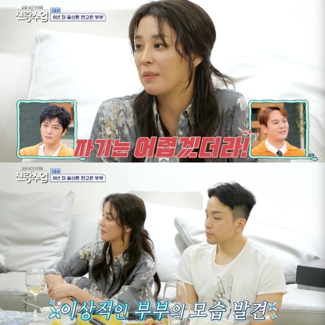 이후 이규한은 신영수 씨에게 본격적인 ‘신랑수업’ 특훈을 받았다. 이규한은 “들은 여보 횟수만 80회가 되는 것 같다. 이유가 있냐’라고 물었고, 신영수 씨는 “그 톤으로 그 사람의 기분이 파악된다. 근데 이 기분은 24시간이면 똑같을 수 없지 않냐”라며 ‘여보’를 자주 부르는 이유를 설명하며 세심한 면모를 보였다. 이를 본 이승철은 “아내의 기상을 관찰하는 건 굉장히 중요하다. 남녀사이에 무조건 필요한다. 싸우는 일을 사전에 예방할 수 있다”라고 공감했다.