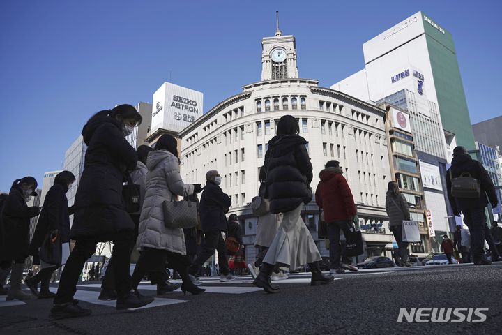 [도쿄=AP/뉴시스]지난달 9일 일본 수도 도쿄 긴자의 횡단보도를 시민들이 건너고 있다. 2023.03.30. |