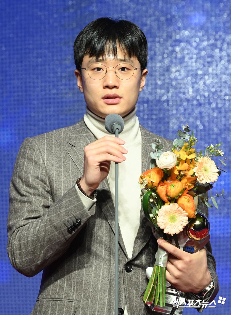 전주 KCC 허웅이 인기상을 수상한 뒤 소감을 전하고 있다.