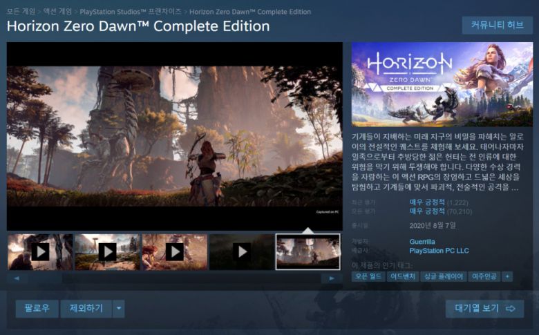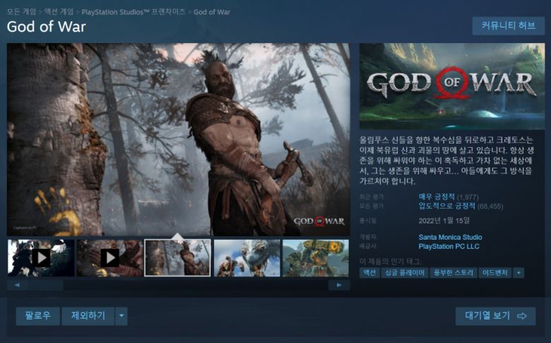 스팀에서 플레이스테이션 스튜디오 프랜차이즈 게임을 손쉽게 확인할 수 있다. |