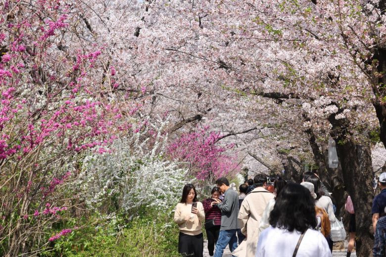 물론 ‘구관이 명관’이라며 전통의 벚꽃 명소를 즐기는 이들도 적지 않다. 지난 29일 서울 송파구 석촌호수에서 마스크를 벗고 친구들과 사진을 찍던 이예린(25)씨는 “코로 꽃내음 맡으니 정말 좋다”고 웃으며 말했다.