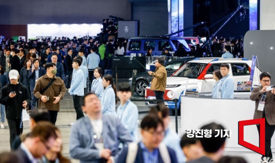 30일 경기 고양 킨텍스에서 열린 '2023서울모빌리티쇼 프레스브리핑'을 찾은 취재진들로 붐비고 있다. 사진=강진형 기자aymsdream@
