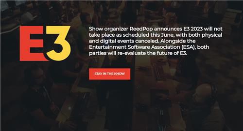 E3 2023 취소 공지./ E3 홈페이지 캡쳐 |