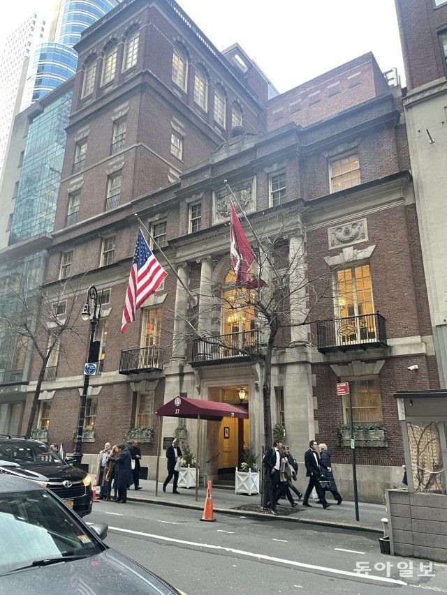 뉴욕 맨해튼 44번가는 하버드클럽을 비롯해 회원제 아이비리그 클럽이 모여 있어 ‘클럽 하우스 로우’라도 불린다. 사진은 하버드 클럽 앞 모습. 뉴욕=김현수 특파원 kimhs@donga.com
