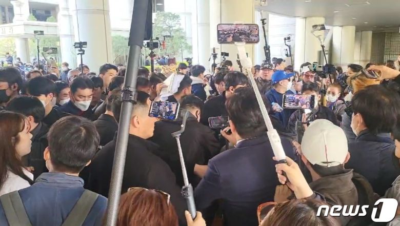 경찰과 경호팀의 제지에도 계란 투척에 유튜버 몸싸움까지 현장 통제가 불가능한 상태였다.