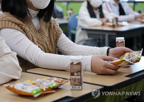 (전주=연합뉴스) 나보배 기자 = 학교비정규직연대회의가 총파업에 돌입한 31일, 전북 전주시 덕진구의 한 초등학교 책상 위에 빵과 우유가 놓여 있다. 파업 여파로 학교는 급식 대신 학생들에게 빵과 우유를 나눠줬다. 2023.3.31