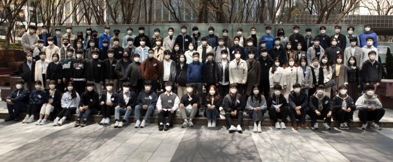지난해 4월 열린 조현정재단 장학생모임에서 조현정 이사장(둘째줄 중앙)을 비롯한 장학생들이 기념촬영을 했다. (비트컴퓨터 제공) |