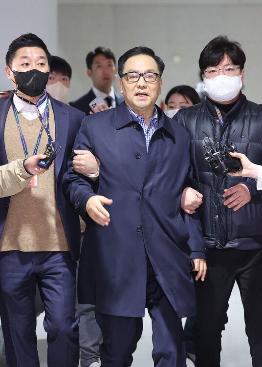박근혜 전 대통령 탄핵 전 계엄령 문건 의혹의 핵심 인물인 조현천 전 기무사령관이 29일 오전 인천국제공항 제2터미널을 통해 입국한 뒤 서울서부지검으로 압송되고 있다. 연합뉴스
