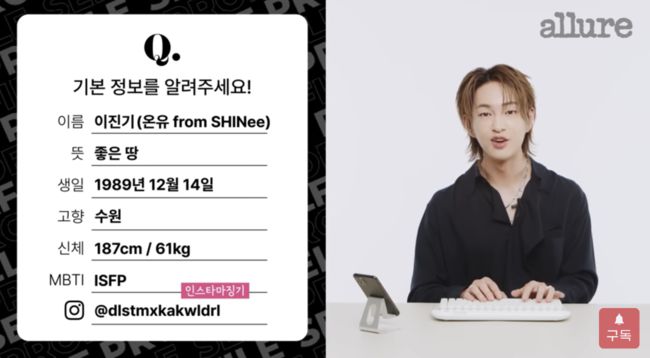 지난 30일, 매거진 얼루어 측의 공식 유튜브 채널 '얼루어 코리아'에는 ‘온유의 본격 ‘성대’ 자랑 인터뷰! 데뷔 15년 만에 밝혀지는 샤이니 온유의 실체 얼루어코리아 Allure Korea’라는 제목의 영상이 업로드 됐다.