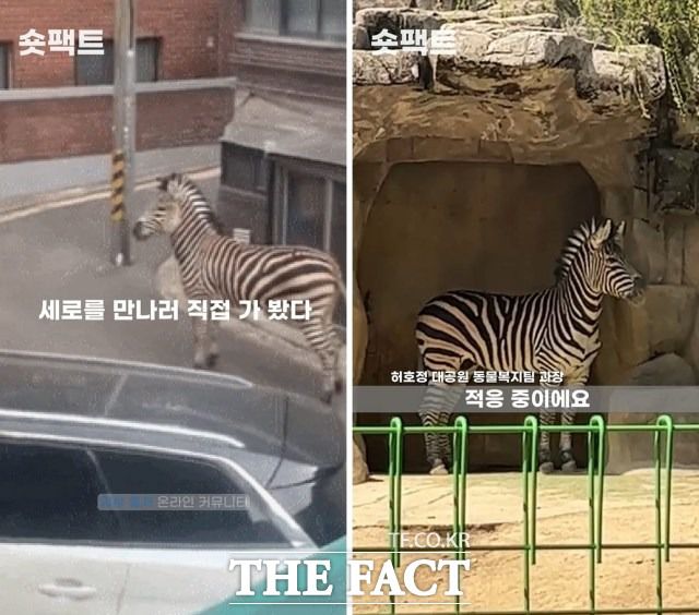 지난달 23일 서울어린이대공원을 탈출했다가 붙잡힌 얼룩말 세로는 현재 안정을 되찾고 방사돼 예전처럼 생활하고 있다. / [숏팩트] 갈무리 |