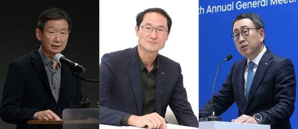 2023년 이동통신 3사(SK텔레콤·KT·LG유플러스) 정기 주주총회가 31일 KT 정기 주총을 끝으로 막을 내렸다. 사진은 왼쪽부터 황현식 LG유플러스 대표, 박종욱 KT 대표이사직무대행, 유영상 SK텔레콤 대표. [사진=각사] |
